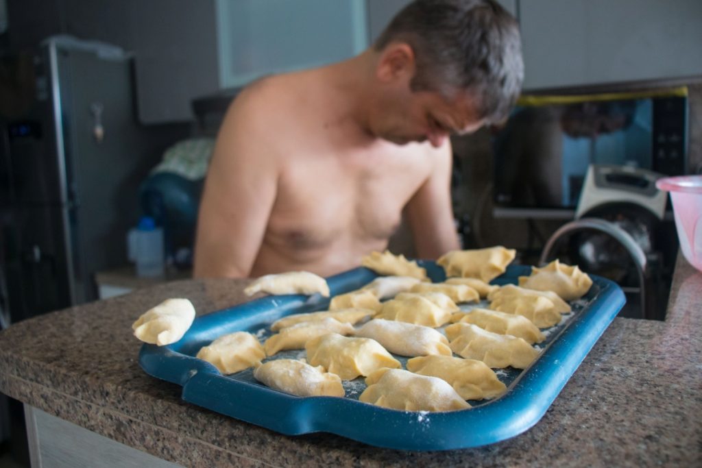 Ale się zmuszamy.. Dziś dzień niesamowity, bo ppierwszy raz robiliśmy (uwaga!!!) Ruskie. Pierogi. Wiem, wchodzą w biodra, ale raz na jakiś czas naprawdę można sobie pozwolić. Kolumbijskie ruskie, na twardym białym serze COLANTA, nie wyszły jakoś spektakularnie, ale naprawdę były smaczne.
